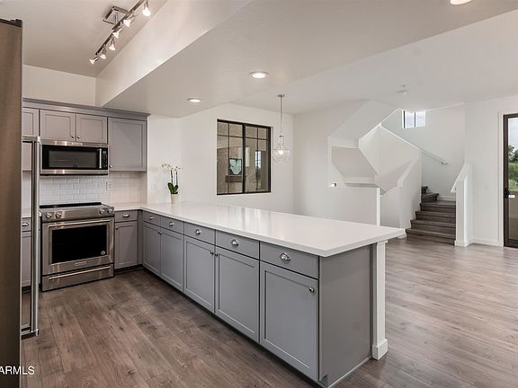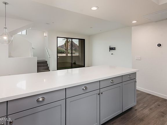 Welcome to your clean, modern 1,654 SF townhome with views, privacy & advantageous location. Kitchen offers KitchenAid appliances, 8 drawers, 17 cabinet doors. Stain-resistant quartz counters thru-out. Each of three floors offers 1 bedroom/1 bath. Primary Suite is entire 3rd floor with 11'6'' vaulted ceiling, office/sitting room, marble floor/tub surround & views of Papago Mountains from Juliet balcony. Enjoy extra windows in living room & office thanks to being an end unit. Interior laundry is on 1st floor. Professionally cleaned throughout including tile floor and carpet. Both AC units recently serviced. Gated community with pool & spa. Quick access to Phoenix, Scottsdale, Tempe & Sky Harbor Airport. Proximity to Phoenix Zoo & Botanical Garden, Papago Park & upcoming Scottsdale Entrada.