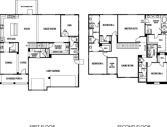 This expansive two-story home features an impressive entry, 5 bedrooms, 4.5 baths, pocket office, den, formal dining room, game room and 3-bay garage. The open-concept downstairs living spaces are ideal for entertaining. Need additional bedrooms? You can select options to replace living spaces with an additional bedroom and/or down-stairs guest suite.