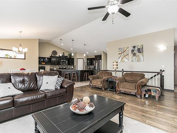 If you are looking for a home with tons of amenities, located in a highly desirable school district, & lots of finished square footage...look no further! This 5 bedroom, 3 bath home is ready for new owners. Main floor features a large open concept flow with three bedrooms, 2 full bathrooms (1 being a primary en suite), gas fireplace, hard surfaces throughout, stainless steel appliances, & main floor laundry. Slider from the dining room walks out to a spacious deck that over looks the back yard and the farm fields behind the home. The lower level is finished with 2 bedrooms and a full bath. There is also a rec room and a walkout to the backyard. Checkout the online virtual tour!