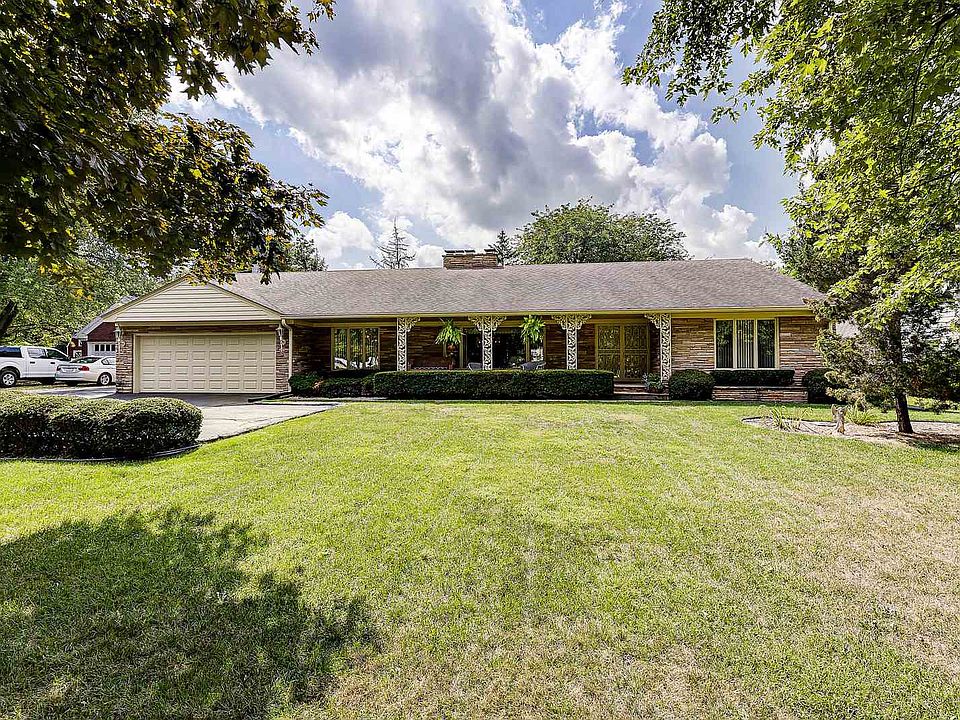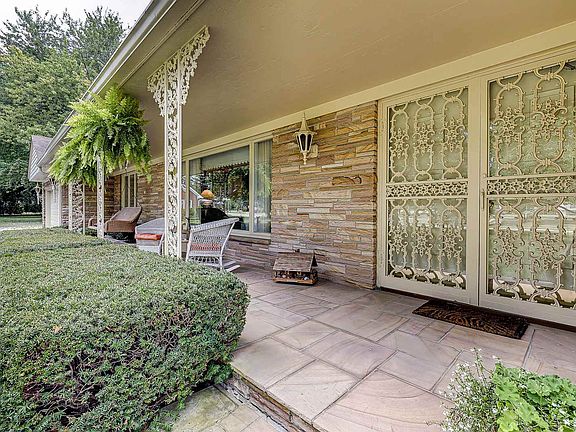 Beyond the double front doors with nuances of art nouveau design, you are welcomed to this brick Ranch Home with over 4000 square feet. Just before Indiana University Kokomo moved from its prior location at the Seiberling Mansion to its current site on South Washington Street, this home was built in 1964 and is situated on .87 acres. A picturesque property in the heart of the city, you'll enjoy both the large covered front porch and the stunning backyard outlined in mature trees with views of the perennial garden - all professionally landscaped to offer privacy and respite. Blending stone, masonry and wood, this open concept home invites elements of nature within as well. Natural light compliments the main floor rooms which include kitchen with breakfast bar, formal dining area and two living spaces - each with a fireplace. Three vast window frames draw you through a sliding glass door and encourage you to relax in the expansive sunroom featuring vaulted ceiling with skylights and wood beams. Continue unwinding on the concrete patio with room to entertain outdoors. To cool off inside during summer or to get extra cozy by a fire in winter, retreat to the finished basement with third living space, fireplace, additional kitchen, bar area and room to play, game and/or craft. Basement could also serve as the perfect place for extended visits, college students, and so much more! With access to parks, restaurants and the amenities of campus, this scenic city property is a remarkable location to call home!
