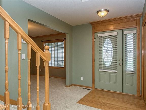Over 3000SF in this beautiful 5BR, 2sty home located in Clover Ridge. This home features a vaulted living room, gas fireplace, 11X13 formal dining room, large eat-in kitchen with granite counters, stainless appliances, tiled backsplash, & hardwood floors. Laundry is on first floor w/washer/dryer included. Upper level includes a 16X16 vaulted master w/an 8'X13' W/I closet. Huge master bath includes whirlpool tub, 4' shower, large vanity with double sinks, & tiled floor. There are three more nice sized bedrooms w/built in desk. Basement finish includes another family room, ¾ bath, & bedroom w/daylight windows. Radon mitigation has already been installed. Garage is oversized two car w/bays of 11.5X21 & 11.5x40. Home is in a great location on a quiet, kit-friendly, cul-de-sac. Great views of trees & pond. Close to all Delaware retail stores w/easy access to I-35 & Des Moines/Ames. Appreciate the convenience! Ankeny school bus stops at bottom of hill. Young ones att