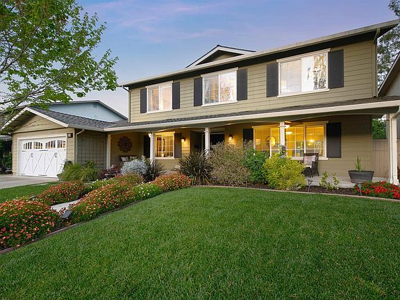 Welcome to this stunning home nestled in Birdland, conveniently situated in close proximity to all 3 top-rated schools & historic Downtown Pleasanton. This desirable Heritage model features a large covered front porch that is perfect for relaxing with your neighbors. Upon entering, you are welcomed by the spacious living room that features a large picture window and luxury vinyl flooring. The expanded kitchen features a breakfast bar, custom cabinetry, granite counters, SS appliances (including a 48” 6 burner gas range) and a walk in pantry. Adjacent to the kitchen is the large family room with home theater speakers, fireplace and a picture window. There is a full bed & bath downstairs along with 4 bedrooms upstairs. The primary bedroom features an additional suite that is currently used as a workout space with cabinetry. The primary bathroom features custom cabinets, marble counters, a skylight and 2 closets. The private & expansive backyard includes a built in kitchen with a high end Lynx grill & a beverage refrigerator. There is also a covered patio seating area, lawn area, storage shed and beautiful landscaping throughout. Additional features of the home include a skylight in the upstairs hallway, ceiling fans in bedrooms, upstairs laundry, water softener and much more!