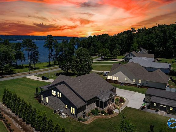 LUXURY LAKEVIEW ESTATE ON SUNSET DRIVE. This custom full-brick 4BR, 5BA home sits on nearly an acre of level land with panoramic lake views and direct access to walking trails. Features include a spacious main-level master suite, office, and a private in-law suite with living room, full kitchen, and storm shelter (non-FEMA rated). Upstairs offers a loft with 2BR/1BA. High-end finishes include Anderson windows, spray foam insulation, tankless water heater, quartz countertops, custom cabinetry, and a commercial-grade gas range. Oversized 3-car garage, covered RV parking with 30-amp service, and whole-house generator. Lake views in front, forested serenity in back—elevated living at its finest.