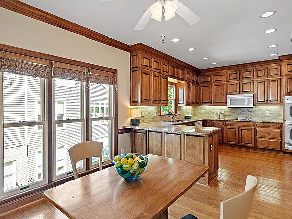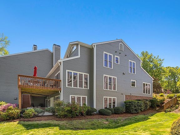 Rare opportunity! Imagine living in a townhouse w/full basement that lives like a single family home! This is not your ordinary townhouse! First floor primary suite w/huge walk in closet, soaking tub, walk-in shower, 2 separate vanities. Gorgeous wood-paneled kitchen cabinets including paneled built-in fridge. Kitchen offers double ovens, microwave, elec cooktop, tile backsplash, granite counters, walk -in pantry just outside kitchen. 2 laundry areas plus laundry chutes! Amazing family room w/deep vaulted ceiling, gas FP, bookcases, tons of light and access to deck. Sunroom off family room. Dining room w/ 2 built-in corner cabinets. 2 very large bedrooms on 2nd floor- each w/private bath. Walk-in storage closet on 2nd floor and access to large walk-in attic. Finished full BSMT too! Features include rec room w/bookcases & FP, bedroom w/access to full bath, utility room, 2 condition storage rooms & office/flex room. Generator. Updated windows! Walk to NBHD tennis/pickleball courts and swimming pool. Garage is attached-accessible via cov'd front porch. Storage room in garage.