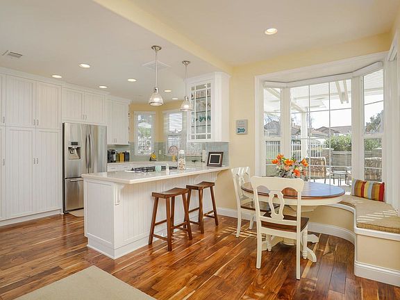 Beautiful home extensively updated. Remodeled custom kitchen, downstairs bath (new shower) and master bathroom. Wide plank acacia wood flooring, premium carpet, custom built-ins, cased windows, a whole house Halo water filtration system, a newer furnace, AC, water heater and so much more. Inviting backyard overlooks the pond and has a brick patio, alumawood shade structure, water feature and fire pit. The upgrades to this property as well as the unsurpassed attention to detail make this an amazing move-in ready home. This beautiful home has been extensively updated and is located in the gated community of Sandy Point. The remodeled kitchen includes custom soft close cabinets, stainless appliances, a farmhouse sink and a nook with cozy built-in seating. The light and bright master bedroom suite includes a luxurious upgraded bathroom with custom cabinets and travertine tile, and has both a shower and large soaking tub. The home features wide plank acacia wood flooring, premium carpet, custom built-ins, cased windows, a whole house Halo water filtration system, a newer furnace, AC, water heater and so much more. The inviting backyard overlooks the pond and has a brick patio, Smart Turf artificial turf, an alumawood shade structure, a water feature, a fire pit and a rain water collection system.