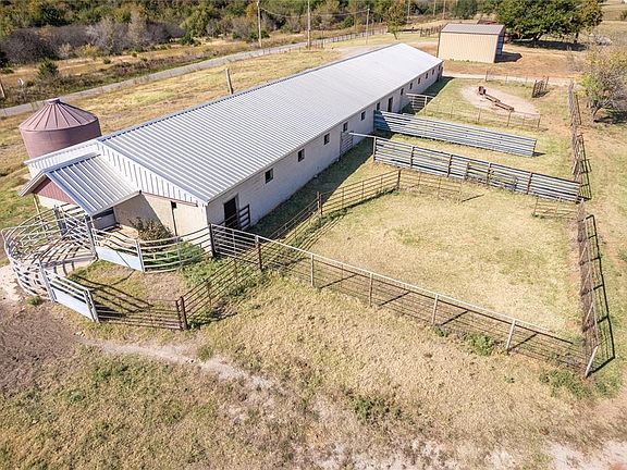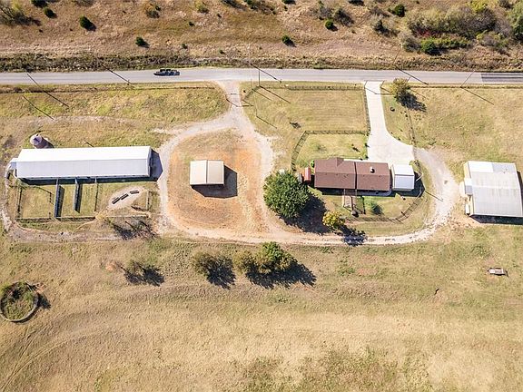 This 43 acre (mol) ranch in Blanchard OK is ready for its next chapter! With a 4 bedroom home, massive 165' X 40' horse barn, & multiple shops & storage, it is ready for your operation! Unrestricted. Gorgeous hilltop views. Large pond. Right on the corner of State Hwy 39 & County Line Ave! 1,223' of Hwy frontage. Fully fenced & cross-fenced. Mixture of Field & Pipe fencing. Home ~ 4 bed ~ 3 bath ~ 2,759 FT² ~ 2 car garage. Built in 1965. Many new updates. Fully electric. 2023 roof. New copper guttering. Large covered front porch. Wraparound sidewalk. Large patio with pergola. 2 living spaces. Kitchen with granite countertops, black appliances, & new cabinets. Fresh interior paint. New flooring (carpet & wood look tile). Dual pane vinyl frame windows. Updated Pex plumbing. Wood-burning fireplace. Large laundry room with mud sink. Office space - could be used as a breakfast nook/flex space. Large mud room/flex room with closet, full bathroom. Water softener. 2nd hot water heater for the inlaw suite is also plumbed to the whole home and can be used if needed. 2' X 6' exterior walls. Horse barn with new metal roof (2023), concrete floors, 25 concrete block stalls, 2 wash bays, 4 runs, & living quarters with mini split. 30' X 25' metal shop/detached garage - steel frame with 2 car overhead door (electric) & 100amp service. 60' X 40' Steel frame shop with 3 overhead doors, 100amp service, & 2 - 60' X 15' sheds (one on each side). 40' X 30' metal hay barn (open-sided). Home has its own electric meter, separate meter for both shops and barn. PSO for electric. OEC for fiber. Water well & septic system. Native and reintroduced grasses. Rolling pastures. Frost free hydrants. Accessible From County Line Ave & Hwy 39. Dibble schools (within 2 miles). 1 mile from fuel, general & multiple feed stores. 4 miles to Winter Creek Golf Club. 7 miles to downtown Blanchard, Ok. McClain County.