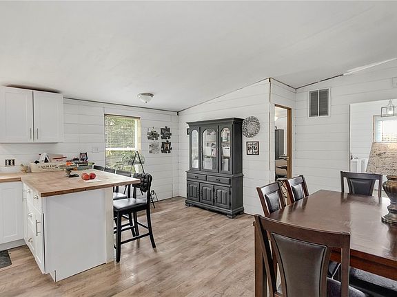 Welcome to your private oasis on 3.12 acres! This manufactured home boasts 3 bedrooms, 1.5 baths, and a full unfinished basement, perfect for storage or future finishing. The home features 2023 new metal roof, 2020-2021 newer HVAC system, replacement windows, new laminate flooring throughout, and insulation. Step inside and fall in love with the charming shiplap walls and in kitchen butcher block countertops, and stainless steel appliances. Add your finishing touches to trim work and shower in the master bath. Enjoy the peace and tranquility of this secluded lot, perfect for those who value privacy. Don't miss out on this gem - schedule your showing today! The age of the property is provided by the tax assessor's office. Property being sold AS-IS.