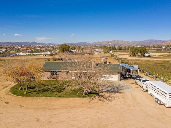 Horse lover's delight! Private well! Beautiful, sprawling 5 acre ranch near the main road and shopping, yet still in a remote and private rural area of Apple Valley! Behold the amazing panoramic views of the city and mountains from the comfort of your own home. All 5 acres are completely fenced and level. The grass in the front lawn is serviced by a sprinkler system, and trees are connected to water irrigation/drip systems as well. Don't forget the 3 apple trees which are mature enough to produce delicious fruit seasonally. Horse arena and corrals can be included in the purchase price is the buyer so desires. Private well is run by a 3 horsepower pump and is only two years old. The house its self is beautifully renovated only 3 years ago and shows like a model home. Windows are double pane throughout, tinted, and heat resistant. Wood laminate flooring in the main living areas, with a bonus den area which could be used as a 3rd bedroom! Granite counters and new cabinets round out the open kitchen. Modern lighting fixtures through the kitchen and living room give this home an elegant feel. Large wood burning stove is powerful enough to heat the entire house, with a pretty new central heat and air unit you can also choose to use. Rooms are good sized, and large enough to hold California King sized beds! There is so much to love about this wonderful home, come schedule your showing today!