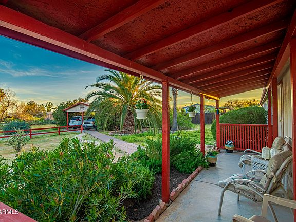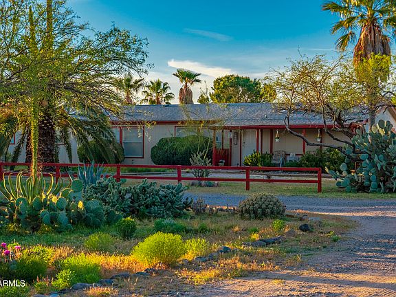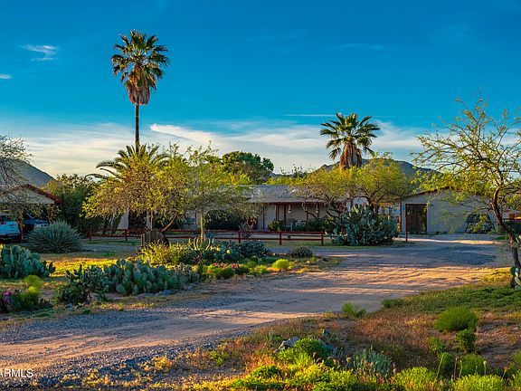 Discover this .8 acre lot offering a secluded oasis nestled among mature verity of cacti. 4-bed, 2-bath boasting a renovated European kitchen with pull-out drawers & butcher block countertops. Vaulted ceilings, a large pantry, & ample storage throughout. Master suite: soaking tub & step-in shower. Revel in mountain views from the patio. The home offers new blinds, paint, Pergo flooring with waterproofing & outdoors a chain-link backyard with ATV drive through gate, & carport. A separate studio with storage & great possibilities. 2 sheds in back. Water feature needs repair, once operating would soothe the senses. Experience tranquility in this desert escape. Congress Elem. School is one of the finest schools in the nation. Home Sold ''as is''.