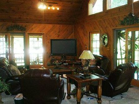 Beautiful log sided 1 1/2 story lake home on 4.75 acres. Scattered trees, lake access with dock permit available. 1 BR, 2 Bath, great room, family room. Could be fenced for animals with some pasture. Garden spot, beautifully landscaped.
