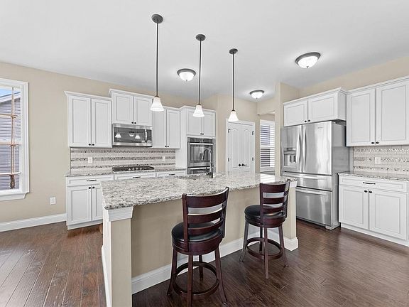 Impressive 2 story home with outstanding features and on-trend finishes! This stunning, 4 BD, 2.5 BA, 2,844 s/f home will wow you! The ext has brick, vinyl siding, arch shingles, carriage style gar door, tasteful landscape and intricate architectural trim. The back yard has a 12x20 comp deck and a large patio w/fire pit. Features inc wood flooring throughout the main, cust shutters, wr iron stair spindles, tall base trim, 9 ft clngs, Jeld Wen Low E windows, SS appl, large island w/brkfst bar, granite c-tops, tile b-splash, gas c-top, dbl oven, gas FP w/stacked stone, main flr Office, DR, 2nd flr laundry, Loft, large Primary Bdr w/dbl door entry and coffered clng, Lux Primary Bath w/shower and soaking tub, raised height bath vanities, W/I closet w/cust org, dual HVAC, R/I bath and an O/S garage(21x21) w/insul garage doors. Enjoy easy access to the shops and dining in Historic St Charles, Frenchtown, Hwys 370-70, the Katy Trl, Streets of St Charles and Lambert Int. So much to love!
