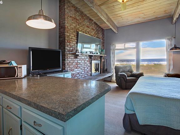 Ocean front upper studio which has been tastefully updated and provides views of Tillamook head and the magnificent ocean. This is an exceptional unit with a fireplace and wood vaulted ceilings to add to the ambiance. Full updated bath and nice kitchenette make this the perfect getaway. Pool and onsite rental management available. Financials available upon request.