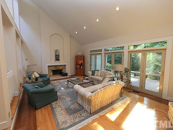 Beautiful ranch on 1 acre lot in popular Stonebridge Subdivision. Transitional home w/very open fl plan & soaring ceilings, skylights, all open to huge decks overlooking private backyard. Split bedrm plan w/ 2 BR on either side. The 2ndary Bedrms share buddy bath w/ea having own toilet & vanity. Kitchen is updated w/ island, granite, some new cabinets and all new doors and drawers, tile floors. Cozy FR w/ BI bookshelves open to kitchen. Mbath has just been updated. Hwds throughout most of home.