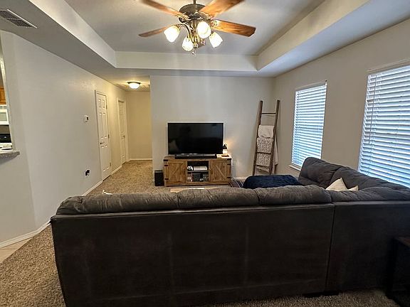Welcome to this charming 3 bedroom, 2 bathroom home located in Clovis, NM. This house features a 2 car garage, washer/dryer, walk-in closets, central heat & air, dishwasher, fenced backyard, jet tub, carpet/tile flooring, ceiling fans, vaulted ceilings, walk-in shower, refrigerator with icemaker, xeriscaped front yard, and pets are welcome upon approval. With a spacious layout and modern amenities such as an over range microwave, double sink vanity, bathroom vanity, electric stove/oven, and shower/tub combination, this home is perfect for anyone looking for a comfortable and convenient living space. Don't miss out on the opportunity to lease this beautiful home for 6-12 months. Tenants are responsible for electric and water bills. Prince Monday - Friday, 9am to 4pm.