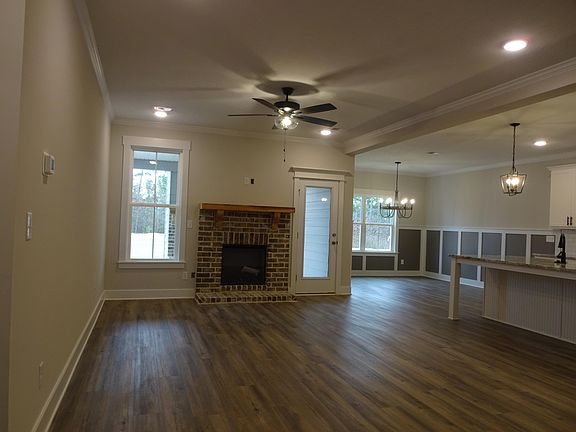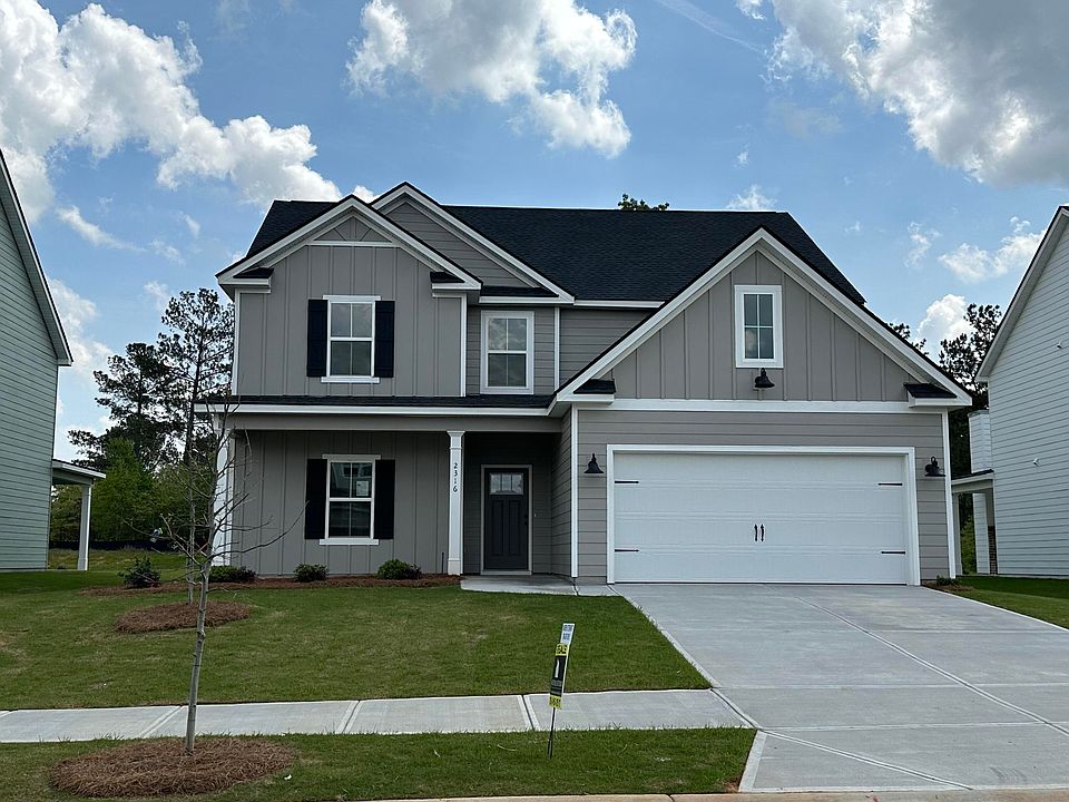 The Sable Plan by South GA Homes - This beautiful 5 bedroom 3.5 bath home is a rare find with a spacious owners suite on the Main floor. The exterior curb appeal with board and batten farmhouse accents and covered front porch and covered back porch with a wood burning fireplace with cedar mantle will catch your eye. Open 2 story foyer/entry way and open floor plan. Large kitchen and great room for family living. Kitchen island with farmhouse sink, granite countertops, tile backsplash, pantry and dining room with judges panels. Laundry room on main level. Evacore flooring throughout main living area. Owner's suite on main with tray ceiling and board and batten accent wall. Owner's bath has separate garden tub with tile surround, full tile shower, double vanities with granite countertop, toilet closet and upgraded tile flooring with large walk-in closet. 3 additional bedrooms upstairs with a 4th bedroom/bonus room. All upstairs bedrooms have private access to a full bath. Sprinkler system, Sodded lawn front and back and 30 yr. arch shingles. Note: Features and fixtures are subject to change based on availability. If schools are important, please verify with the county. Room sizes are approximate, if important please verify.