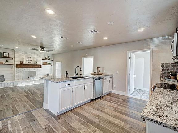 Beautiful farm house style home. So many EXTRAS 2 spacious living areas with built in shelves for decorating. Great open floor plan for entertaining guests. Large bar area with granite in kitchen. New white kitchen cabinets with beautiful new granite and back splash. Kitchen comes complete with all new appliances. Large master bedroom with new carpet and 2 closets. Master bath has beautiful shower tub combo. Cute shiplap with farm house lighting features and granite counter tops.New hvac and windows. Great workshop in back.
