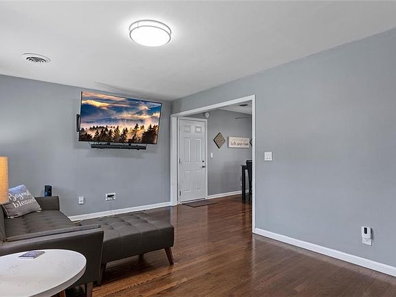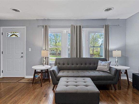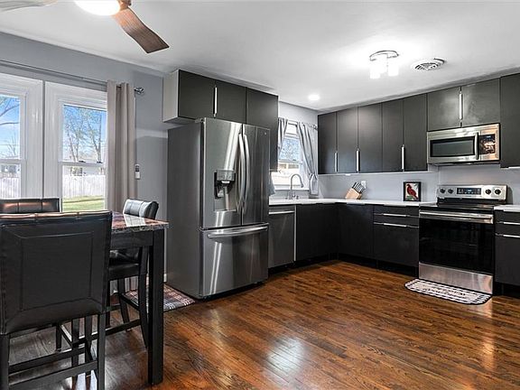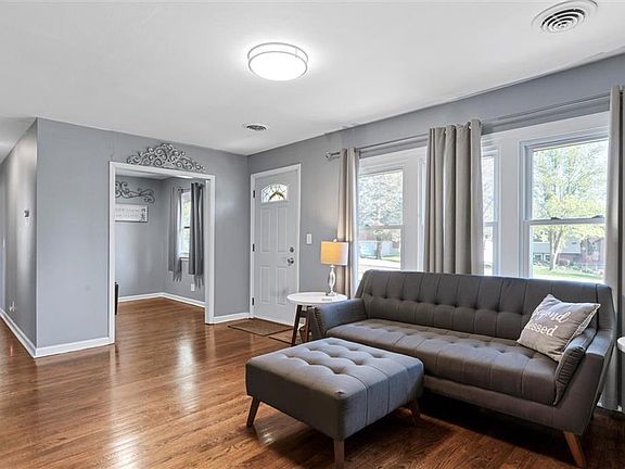 Easy Living in this updated and upgraded Ranch! As you enter you will be impressed with the gleaming hardwood floors throughout the entire home. Enjoy the stylish newer kitchen with an abundance of soft close cabinets, stunning quartz countertops, stainless steel appliances and room for a large table. The renovated bath features tile flooring, newer double vanity and large shower. Spacious bedrooms with charming barn doors covering the closets. Venture outside to find a .34 acre lot with a tall wood privacy fence, shed, mature trees and level backyard. Don't forget the deck too, gutter guards and maintenance free steel siding. Additional room off the garage could serve as additional storage or even a man cave. New stairs were added to above the garage attic space for easy access. Newer windows, paint, doors and screens. Prime location, close to hwys, shopping and A+ rated Platte County School District.