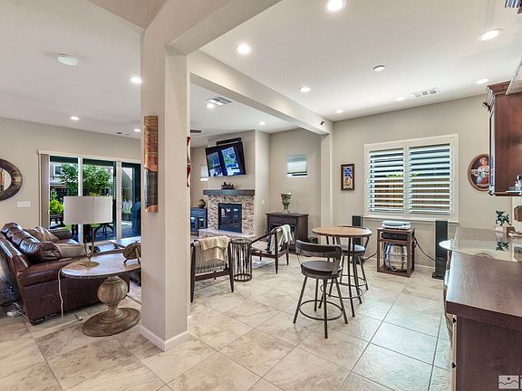 Exquisite Bella Vista home with upgrades galore. This stunning home offers 18x18 tile floors, new patterned carpet with upgraded pad, new granite counters and sink on kitchen island with breakfast bar seating added, a custom built bar with two wine/beverage coolers, Tough Door screen doors on the front and sliding glass doors, Pure Water System filtration, shutters and blinds, a alarm system, and a gorgeous epoxy garage floor to list a few things. The fully landscaped backyard offers covered and uncovered, patio seating, and yes the hot tub and swim spa are included, low maintenance faux grass, art deco metal flower planters and open view fencing that gives this home a feel of more space without lacking privacy. Enjoy gorgeous mountain views from the back raised patio or the balcony off the master bedroom. Located close to schools, shopping, major driving roads, and medical care. Homes this stunning don't come along every day and this is one sure to please so don't miss it. Sellers currently have maintenance contracts on HVAC and water softener. Items included in sale in addition to hot tub and swim spa are garage cabinets and racks and hanging shelves, cement bench by swim spa, all planters outside and shed on side of house.*None negotiable items not included in sale are the Jack Daniels whiskey barrel at custom bar, freezer in garage and little greenhouse on wheels. There may be video recording devices on this home.