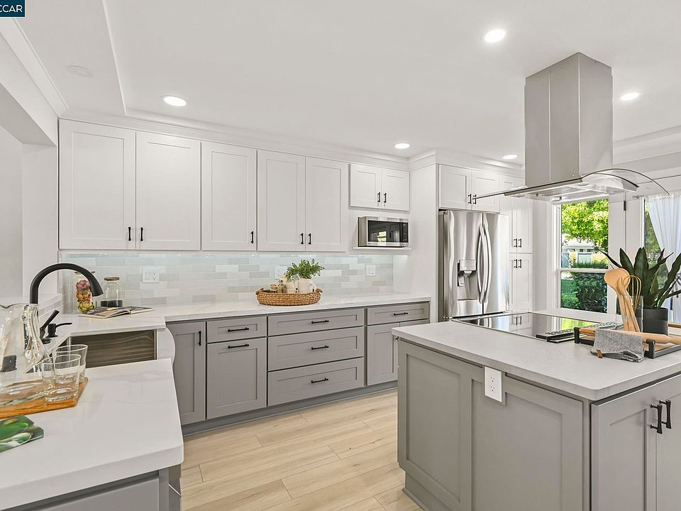 - Features: 220 Volt Outlet, Counter - Solid Surface, Dishwasher, Electric Range/Cooktop, Garbage Disposal, Island, Microwave, Range/Oven Free Standing, Refrigerator, Self-Cleaning Oven, Updated Kitchen