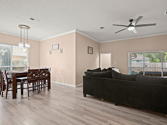 Wonderful home on quiet street in South Creek. Beautiful street appeal, three sides brick, large trees in front, nice deck at rear of home, large back yard. Great floor plan with primary suite separate from other bedrooms. Huge living area with corner fireplace, large formal dining, nice kitchen and breakfast.
