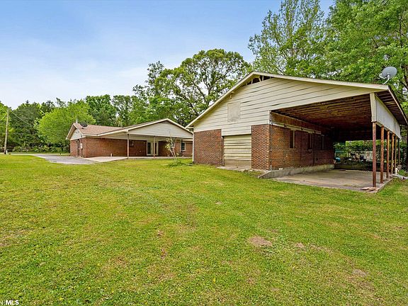 An acre on the water with a handyman’s dream workshop, and NO flood insurance required! Affordable waterfront home with new bulkhead/seawall! Great house, big yard, huge workshop, and covered RV parking on a navigable canal that is 5 min to Dog River…and it is NOT in a flood zone! The new walkway along the water will allow hours of fishing and easy access to your boat. This 3/2 brick rancher has been updated and is move-in ready. Freshly painted interior, granite countertops, stainless appliances, the HVAC is only a few years old (per seller), and roof was replaced in 2021. There is a generously sized 2-car carport and patio area attached to the rear of the house as well as a covered front porch. An amazing workshop sits behind the main house with 110v & 220v installed, a ton of attic storage, a 1/2 bath for convenience, and covered RV parking at the rear with 30/50 amp elec. This is a rare property at a great price. Don't let it slip away.