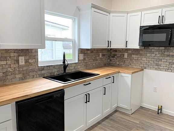 Completely remodeled 2 bed, 1 bath on a nice-sized lot! Spacious newly built back and front porch provides a great indoor/outdoor space to enjoy. Inside you'll see that the house has new flooring, drywall, plumping, and electrical. Brand new kitchen features butcher block counters and a new stone backsplash. Beautiful tiled shower/tub combo with updated vanity. Sliding barn doors on all closets for easy access. Outside, you will see a remodeled one and a half car garage with electricity. All utilities are brand new. Dishwasher and microwave are included. New Roof and siding! Ready for you to move right in! MUST BE PRE APPROVED WITH A LENDER TO DO A WALK THROUGH.