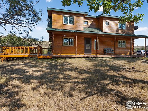 Close to town 15.47 acres with 2706 SF 3-bedroom, 2-bathroom home, 3 car detached garage and 32'x40' barn. The 2-story home has new carpeting throughout, new back deck, newly installed sod in the backyard and the entire exterior was recently stained. Great property for your horses, other livestock or to recreate on your ATV's. The property extends approximately 150 yards beyond the top of the ridge. Little Thompson Water. NO HOA or Metro District.