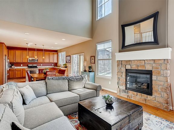 Virtual tours available. Join a live video call with an agent while they walk you through the home! Gorgeous mountain views from this 3 bedroom, 3.5 bath home with 2945 square feet in Lakewood! This stunning home in Solterra is in perfect move-in ready condition with many amenities including a finished basement, amazing open layout for entertaining, and a vaulted two-story great room with abundant natural light. The kitchen is spacious with a large island, 42" cabinets, stainless steel appliances and granite countertops. The main floor also boasts an office space/flex area. A retreat like master offers plush carpeting, a walk-in closet and an en suite bath complete with smooth surface countertops, a separate soaking tub and step-in shower. Laundry room is upstairs for added convenience. The finished basement has plenty of space to be converted to a fourth bedroom. A stamped concrete patio is in the backyard, perfect for enjoying the outdoors. Miles of hiking on a paved trail which is right out front! Pool, clubhouse, tennis court, dog park are offered in the community and across the street from a park and playground. 5 min walk to the pool! Central AC. Smart technology. Separate laundry room. Alarm system installed. Double paned windows. Just minutes to the foothills. So beautiful, immaculate and wonderful in every day!