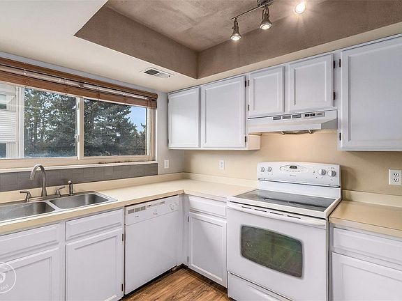 This Aurora two-story townhome offers a fireplace, a sunroom, a breakfast bar, a master bedroom walk-in closet, an open balcony, and a two-car garage.