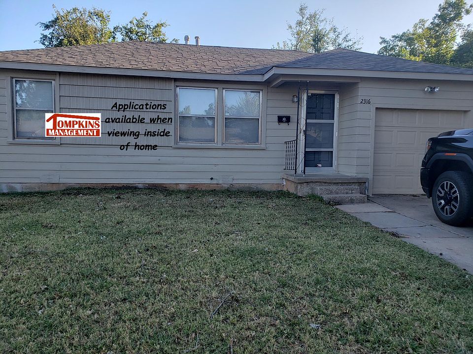 Nice home in a quite neighborhood in SW OKC. 2 Bed, 1 Bath, 1 car garage. This home offers central Heat/AC, stove, refrigerator, alarm system, garage door opener, fenced in back yard, and garage washer and dryer hook ups. Application Fee $25