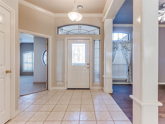 Great home with a superb layout in SOKC. Primary bedroom is on one side connected to the front office by a large bathroom. Other side offers 2 sizable bedrooms connected by a Jack and Jill bath. In the center is an open living, dining, kitchen, and informal dining great for entertaining. Kitchen features a bar, built in desk, tons of cabinets, and a walk-in pantry. Primary bedroom offers privacy and an ensuite bath with separate jetted tub and tiled shower, 2 sinks, and a huge walk-in closet. Other features of the home include a formal dining room with crown moulding, gas fireplace, storm shelter in the garage, large utility room, abundant storage, and an inground pool. Roof replaced last month. Superb location close to I-240 and I-44.