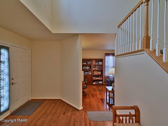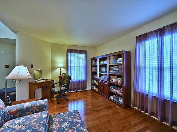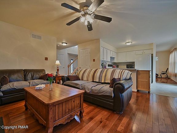 ENJOY MAINTENANCE-FREE LIVING in this spacious 3 bedroom/3 bath patio home in Blue Mt. Lake Estates. HARDWOOD floors throughout 1st floor (except kitchen & half bath). You'll love the OPEN FLOOR PLAN w/comfortable living rm & efficient kitchen w/sliders to back deck. Kitchen leands to formal dining area & lovely cozy den or office. Half bath & laundry complete main floor. Upstairs is large primary bedroom w/vaulted ceiling, his & her closets & private bathroom. There are 2 other good-size bedrooms both w/roomy closets. Full daylight basement could be finished for extra living space if desired. Two car attached garage. Low Taxes. Community amenities include club house, outdoor pool & tennis courts. Don't miss this one!