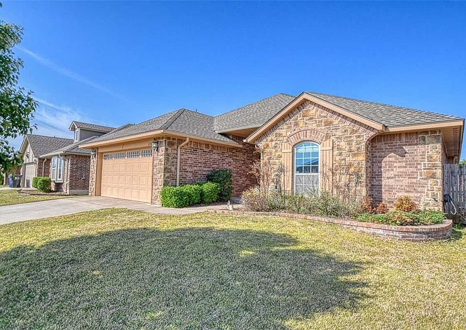 You will feel at home when you enter this house! Schedule a tour today or come by our OPEN HOUSES Saturday 4/15 and Sunday 4/16 from 2-4PM. The large primary suite features a large shower, a cozy soaking tub, a spacious closet, and plenty of space for a king size bed and furniture. The main area of the house is open concept with a large space for a dining table and a breakfast nook area that can fit 2 bar stools. There is ample storage, including a large pantry, cabinets and countertops in the laundry room, and a linen closet in the hallway. The yard is perfect for spending time outside. It has a 6-foot wooden privacy fence and a shade structure that will stay with the home. This location is super convenient & only minutes away from Sooner Road and I-35. Right down the road is Sutton Wilderness Park, with plenty of outdoor trails and natural beauty! The owners have taken great care of this home, and you will feel it when you come in the door.
