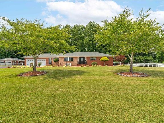 *Offer Deadline 7/20 at 5:00pm* Welcome home to this beautifully maintained property! This charming brick ranch sits on just under 10 acres offering so much character with hardwood floors and plank ceilings. The living room is cozy with a huge fireplace, leading to the kitchen with ample cabinet space and granite counter tops. Enjoy the sunroom off the kitchen which leads to the back patio including a hot tub, great for entertaining guests! Fresh paint throughout. Additional features are the detached 3 gar garage, barn, and large carport that are suitable for all your needs!