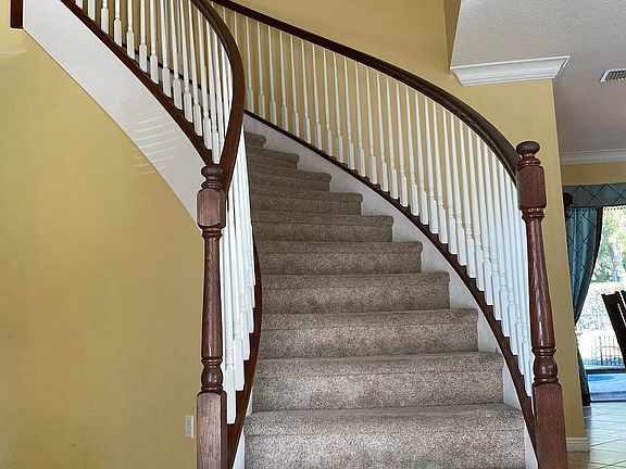 Gorgeous two-story home located on a quiet cul-de-sac in the desirable, gated Olympia neighborhood. Perfect for entertaining, this house has huge rooms and plenty of upgrades. Step inside and you will immediately notice the light and bright interior flooded with natural light, beautiful spiral staircase, granite floor inlays, crown molding, 4 1/4'' baseboards, high ceilings, and 18X18'' tile laid in a diagonal pattern. Gourmet kitchen features slate GE appliances (including a double oven), granite counter tops, breakfast bar/island, and walk-in pantry. The master bedroom is HUGE and has a double door entry, two walk-in closets equipped with custom built-ins, large master bath, and beautiful lake views - with the 5th bedroom acting as a flex space perfect for a sitting area, office,