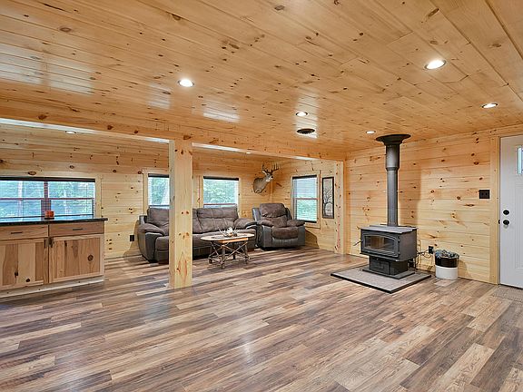 Welcome to this cute country home! All new interior offering 2 bedrooms 1 full bath. All wood walls and ceilings. New kitchen. All new flooring. Covered porch area. with storage shed off to side. Nice 30x40 pole barn finished with concrete and electric. The perfect shop! Wooded acreage. Nothing but secluded peaceful living at this spot. Come check it out!