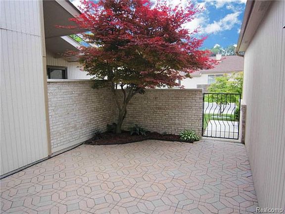 Walk to downtown Farmington!Great location on this delightful,ready to move into home!Neutral dcor compliments gleaming hardwood floors(05)in LR & DR with 2 doorwalls out to 8x23 deck.Updated kit(06)w/Corian counters,molded sink,wood cabinets, track & undercounter lights,ceiling fan, ceramic flr.Inclds all appliances.Doorwall to lovely private brick paver courtyard. Ceramic foyer.Newer front door(06),furnace(08),new hot H2O tank(14),Wallside windows & doorwalls(06)with energy film.Master bdrm has 2 closets,one a walk-in,private bath & doorwall to balcony.Partially finished lower level, convenient 1st flr laundry.Additional apron parking for 2nd vehicle.Assoc.fee includes basic cable.Taxes non-homesteaded at this time.