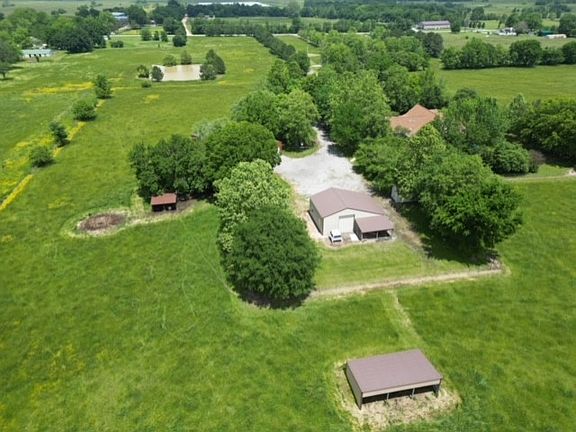 This great property boasts a spacious 5 beds, 2 baths house nestled on 20 Acres of land. With over 4000 sq ft of living space, the house features a cozy wood stove in the living room, perfect for chilly evenings. The large family room provides ample space for gatherings & is equipped with a fireplace. Safety is a top priority w/an in house storm shelter and an auto switch whole house generator to ensure continuous power supply. Outside you'll love the frost free water hydrants, & the 18 ft round above ground swimming pool for summer fun. For those who love to tinker there is a 40 X 80 metal shop w/3 overhead doors, a 30 X40 enclosed shop w/lean to, a loafing shed and a small storage building. The property also includes a 2 car garage & a 1 car carport for convenient parking options. The home layout includes 3 beds on the 1st floor while the 2nd floor features 2 bedrooms & a bonus room, offering flexibility & additional living space. The house is on Rural water and a well furnishes the water for the outside.