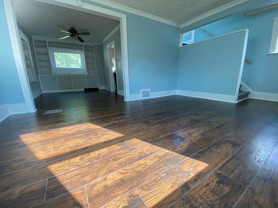 Fully renovated 4 BEDROOM, 1.5 BATH. new flooring in kitchen, living room and dining room washer dryer in unit energy efficient windows full basement lots of storage garage and off street parking Nice neighbors and landlord easy payments for rent through apartments.com 12 month lease minimum tenant pays all utilities to move in all applicants will need to pass a background check(e-renter.com $30/adult), submit a security deposit = 1 months rent and first months rent.