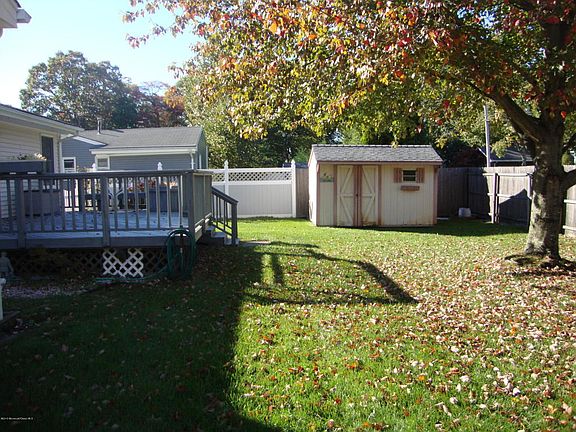Ranch style living featuring a welcoming entry foyer which opens to a spacious living room and dining room. This bright sprawling ranch features 3 bedroom 2 full baths in a great family neighborhood. The large eat in kitchen features solid wood cabinetry. Living room features a large bay window and the dining room has hardwood floors and sliders out to a private deck for entertaining. Nicely landscaped, new furnace and garage door, central air, gas baseboard heat,laundry room, sprinkler system. Plenty of room for a built-in-pool. Bike to community park, beach and schools.