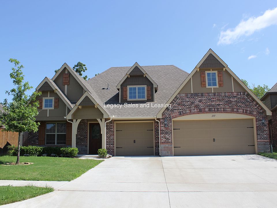 Gorgeous home in Dutcher's Crossing features hardwoods, tile floor, granite, SS appliances, walk-in pantry and walk-in closets, spacious BR's. Master suite includes walk-in shower, soaking tub, his/her closets. Covered back patio w/ mature trees. Community pool, Bixby Schools. $1800/mo with one year lease, $1800 security deposit, $400 non-refundable pet fee per pet.