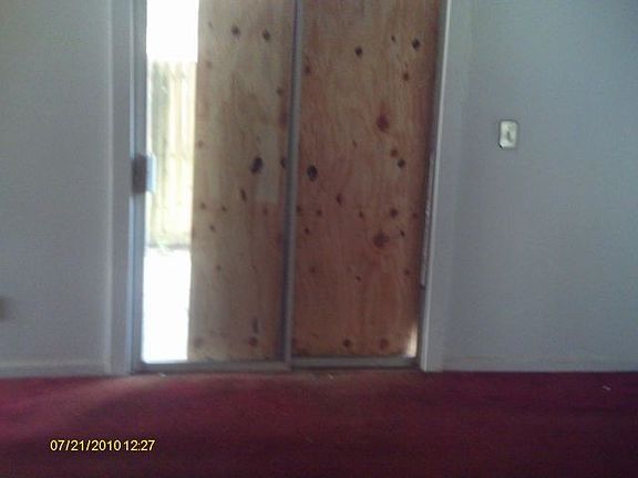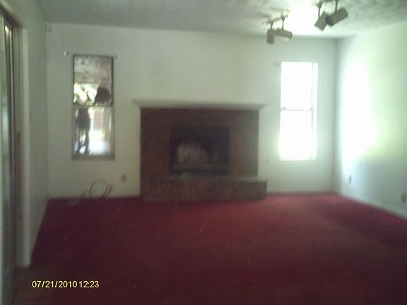 Exterior Features: Single level home, lot is a nice size and has been groomed. Siding appears to be in fair condition. Backyard is also a nice size and has also remained groomed, fenced in rear yard. Siding: Fair condition. Windows: Intact. Soffits and Eaves: Intact. SF:(Lot) Unknown. SF (Home) Unknown. Patio/Porch: None, Roof: Asphalt Shingle. Driveway: None. Interior Features: Most rooms are carpeted; living room includes a brick fireplace. Walls are painted white and appear to be in fair condition. Living Room: Red carpeting looks clean; fireplace is brick and looks nice. Track lighting was found on the ceiling. Kitchen: Tiled floors, cabinets, counter tops and sink are all in place. Bathroom: Tub, toilet and sink are in place. Bedroom: Rooms will need some repair, carpets may need replacing, walls will need repair. Basement: None. Mechanics: Hot Water Tank. Garage: None.