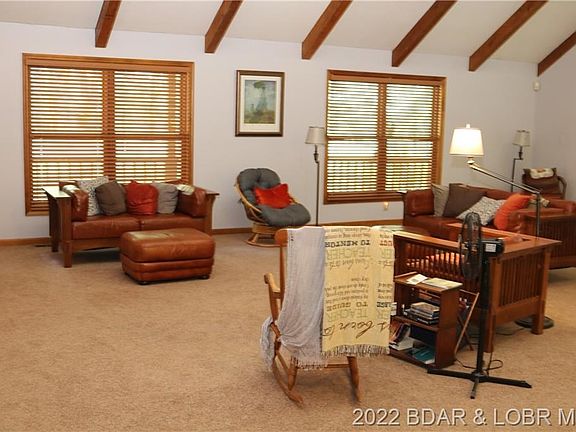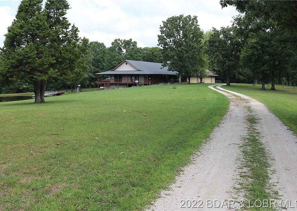 Here is your chance to own a custom built home!! Stunning almost 5,000 sq ft home with main level living. This home is a entertainers paradise with large open floor plan with huge gourmet kitchen and spacious living room with vaulted ceilings and beautiful natural wood beams to compliment the massive native stone fireplace. Sitting on almost 35 acres, this is a nature lovers dream with abundance of wildlife. Oversized fully stocked pond with swim/fishing dock. Awesome screened in breezeway to enjoy the breathtaking views of this lush country estate year around. You will love the charming wrap around porch. You will enjoy your 3 car oversized drive through garage with climate controlled workshop. This is a immaculate country estate with over 1500 ft of hwy Ra frontage just minutes from Laurie and the beautiful Lake of the Ozarks. The possibilities are endless with lots of room for expansion.