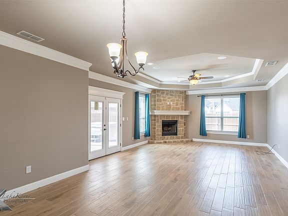Corner stone fireplaceHot tubDreamy backyardStainless steel appliancesBack patioGranite countertopsCarpeted bedrooms