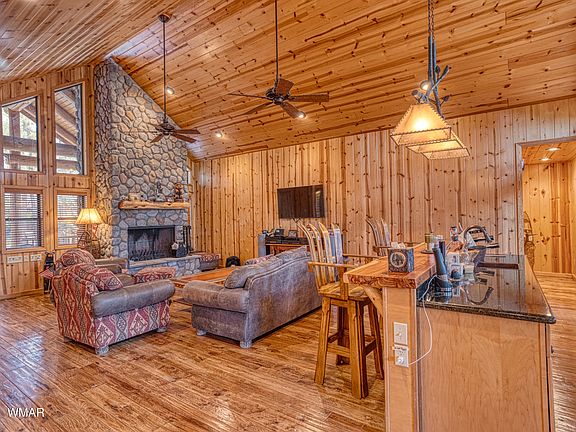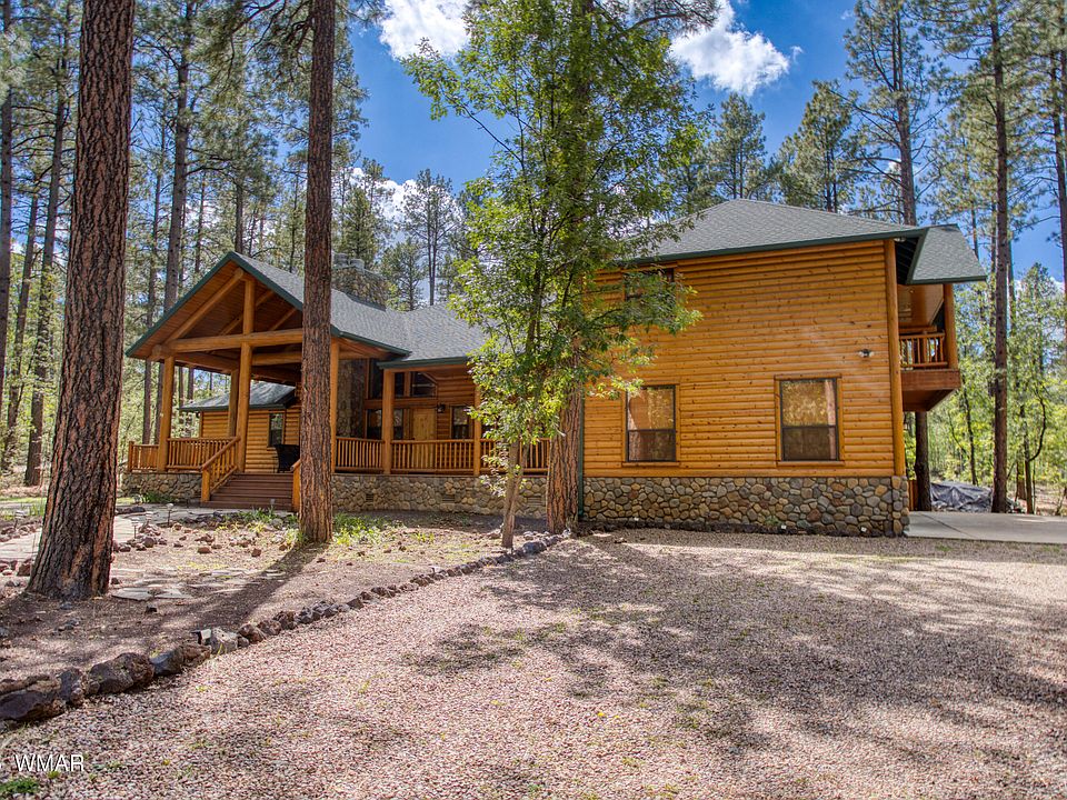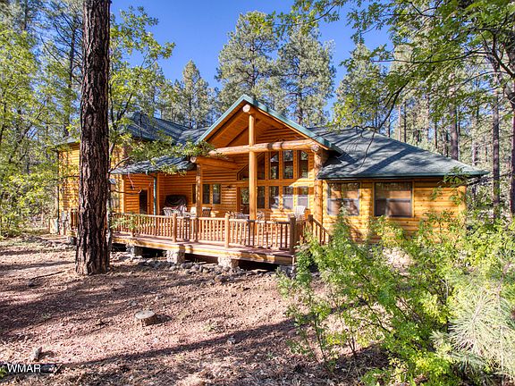 Beautiful 5 Bedroom mountain home inside the gates of White Mountain Summer Homes. Surrounded by towering pines, this spacious retreat features soaring ceilings, cozy fireplaces, beautiful log accents, 4 ensuite bedrooms plus an additional half bath, 2-1/2 car garage and all just a short golf cart ride to the clubhouse at White Mountain CC. (See more of the club and golf course at WMCCPinetop.com) The property is made for entertaining, offering oversized rooms, a wet bar in the great room, & seamless indoor-outdoor living with expansive covered decks for gatherings of friends & family. A second upstairs family room is flanked by 2 of the 4 ensuite bedrooms. Enjoy cool summer evenings in a peaceful, private setting nestled one of the most sought-after communities in the White Mountains!