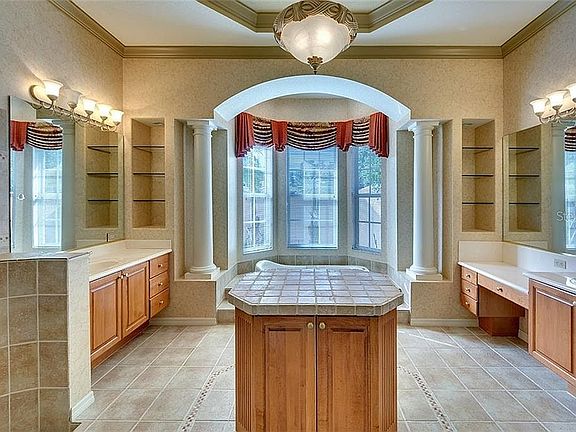 - Interior Features: Ceiling Fans(s), Eating Space In Kitchen, High Ceiling(s), Open Floorplan, Split Bedroom, Stone Counters, Walk-In Closet(s), Crown Molding, Solid Wood Cabinets, Solid Surface Counters, Built in Features, Window Treatments, Coffered Ceiling(s)