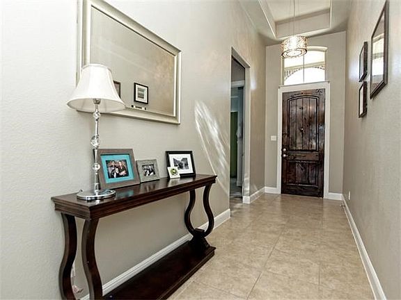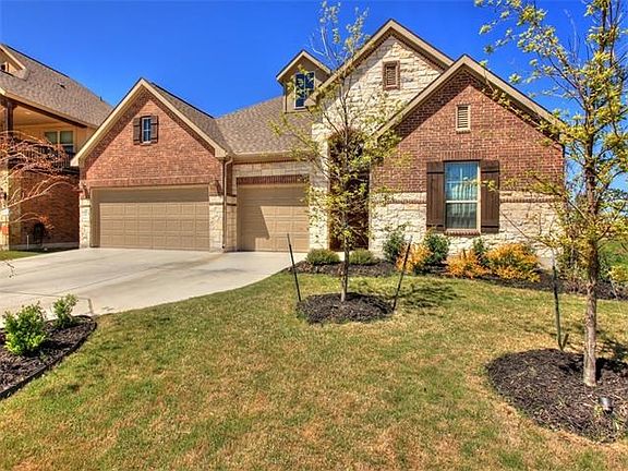 One story brick and stone one story in Leander. Tiled front entry, soaring ceilings, large open floor plan with stunning kitchen. Large island with breakfast bar open to family room with gas fireplace. Master suite has walk in shower and soaker tub, separate vanities, framed mirrors, and galss tile accent wall. A large gameroom for overflow and covered back porch are perfect for entertaining.