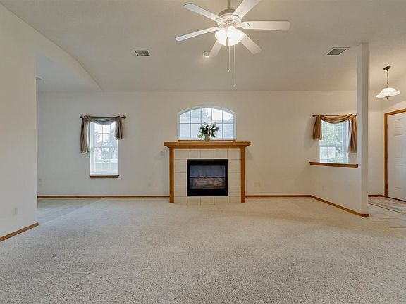 Beautifully appointed patio home in desirable Lochs at Aberdeen! Over 1,500 sq ft. all on one level makes for spacious rooms. Large Kitchen, with plenty of cabinets, open living room with Gas fireplace. This home is easy to show and ready to move into! Spacious bedrooms - master with 2 sinks and walk-in shower. Master closet is a storm shelter. Over sized 2 car garage with built in shelves and work bench. HOA covers lawn maintenance (mowing and fertilizing), sprinkler system and water for sprinkler system, snow and trash removal, some exterior maintenance.