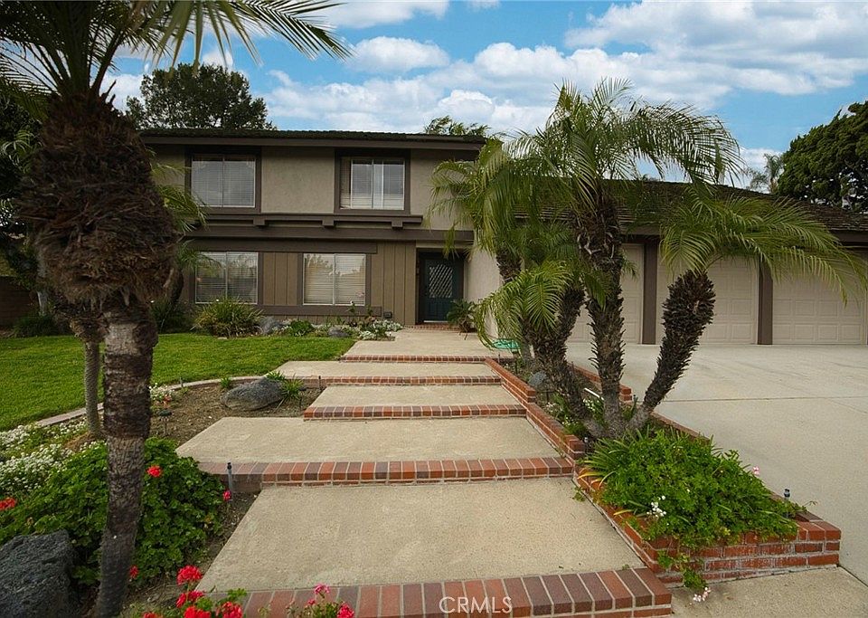 Lovely Fullerton home in a serene and highly sought-after neighborhood is waiting for you! This is a two-story home that offers modern comforts and ample space. The main level welcomes you with a spacious living area featuring a high ceiling that enhance the sense of openness and light. An attractive, remodeled kitchen, with counter eating area, flows into the family room where French-paned sliding doors showcase a private patio for lots of enjoyment. The well maintained yard is adorned with fruit trees and a relaxing in-ground spa. The patio space creates a terrific indoor-outdoor living experience perfect for entertaining or unwinding after a long day. There are two bedrooms on the main floor, which includes a main-level primary suite with ensuite. Upstairs, there is a large loft/bonus space to provide versatility for an in-home office or additional living area to suit your needs. There is a third bedroom and bath on the second floor as well. Need great storage? There is a wonderful storage closet on the second level as well as the 3-car garage with a wall of handsome storage cupboards for a clean look. With its ideal Sunny Hills location, in a peaceful and highly desirable neighborhood, this home offers comfort, convenience, and appeal!