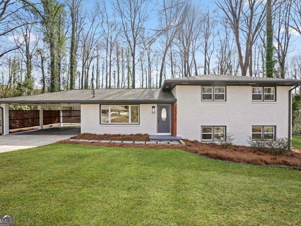 Fully renovated home in a quiet peaceful neighborhood of Decatur! 2-car carport outlined with aesthetically pleasing stained wood that also compliments the exterior look! Features in this home includes open floor plan, stained hardwood floors throughout, island, new cabinets & pantry, drop down hood vent, built in microwave, new windows, new appliances, fairly new roof, accent wall, renovated tiled bathrooms + more! Double doors downstairs opens up to the master suite that has 4 closets. As you continue into the master suite, it will lead you to a desirable bathroom!